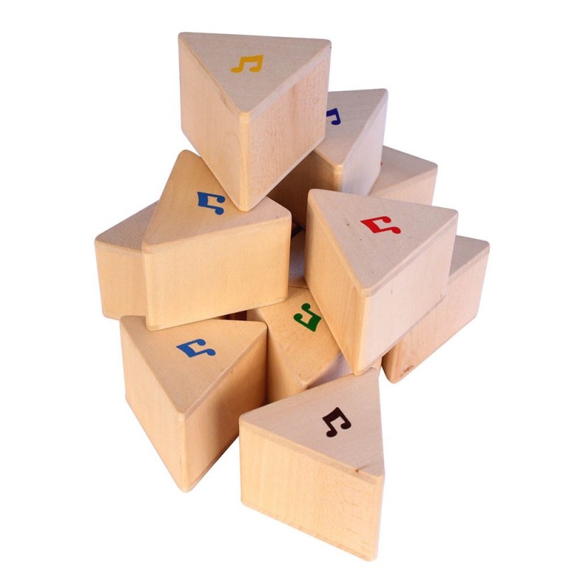 dès 2 ans 12 pièces en bois brut en triangles 1 sac de tissus. |