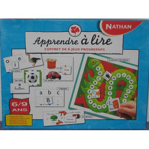 Dès 6 ans Contenu: 7 planches illutrées recto-verso, 26 jetons "alphabet", 30 jetons"abécédaire", 26 cartes"image", 26 jetons"mot", 40 jetons "lettre", 24 jetons "syllabe", 32 jetons "histoire", 4 pions, 1 dé, 1 feuillet pour faciliter le tri et le rangement, 1 livret pédagogique |