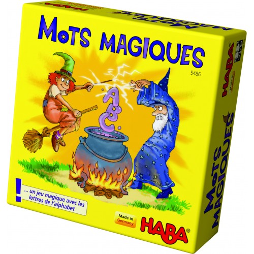 Dés 6 ans 1 sorcière(rouge), 1 magicien(bleu), 10 cartes de mots magiques, 26 cartes de lettres, 3 cartes vierges à remplir, 4 cartes circuit, 1 carte d'arrivée (=chaudron magique), 1 notice. |