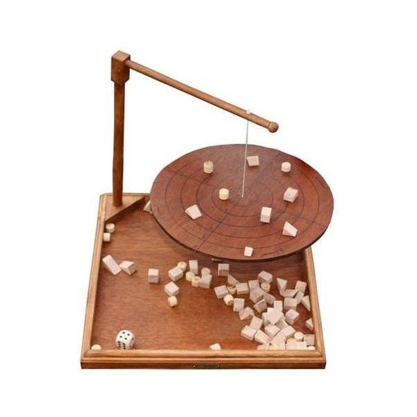 1 Plateau en bois composé de 3 pieces 1 grand dé en bois 61 pièces en bois de différentes formes 1 Règle de Jeu |