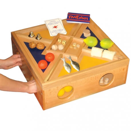 Dès 5 ans 48 cartes 13 paires d'objet : (2 citrons, 2 poissons, 2 mandarines, 2 noix, 2 bobines en bois, 2 dés en bois, 2 balles en mousse, 2 balles en bois, 2 boutons en bois, 2 grelots, 2 peaux de mouton, 2 palets en bois. 1 règle de jeu |