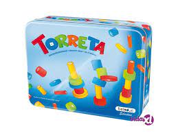 Dès 4 ans 1 boite en fer 25 éléments de construction en bois, 1 dé multicolore, 1 dé à points(1-6) en bois, 1 règle de jeu |