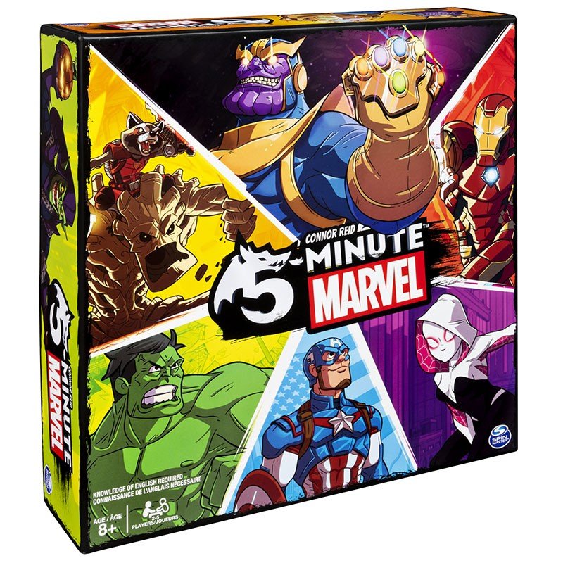 5 Minute Marvel, un jeu de cartes coopératif et nerveux dans l'univers Marvel ! Joignez vos forces pour traverser des donjons peuplés de créatures maléfiques et farfelues. Remportez la victoire ensemble, ou périssez ! Tout le monde joue en même temps pour trouver extrêmement rapidement les symboles nécessaires pour franchir les cartes Porte qui barrent l’accès au boss, puis le vaincre en moins de 5mn. Retrouvez dix héros à incarner, chacun avec son deck dédié et ses capacités. Votre jeu : Vaincre les 5 boss des donjons en équipe, maximum en 5mn chacun ! Les points fort du jeu : Fun, immersif, nerveux, vraie pression créée par le temps réel. De l’humour, tant dans les graphismes que dans les textes. Idéal pour des soirées entre amis et belle rejouabilité. Simple à expliquer mais un vrai challenge de communication et coordination des actions entre joueurs. |