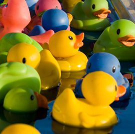 - 1 caisse transparente: - 32 Canards - 6 cannes à pêche en bois avec anneaux - 2 Bassins coquillages |