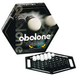 Grand classique du jeu abstrait pour deux, Abalone vous invite à tenter d'éjecter d'un plateau hexagonal six billes de votre adversaire en les poussant avec les vôtres. Les joueurs peuvent effectuer une seule action (ou mouvement) par tour. À votre tour, vous pourrez ainsi déplacer de une à trois boules de votre camp vers un ou plusieurs espaces libres situés dans une même direction ou effectuer un « Sumito », mouvement consistant à pousser les billes adverses lorsque vous vous trouvez en position de supériorité numérique. Calculez bien vos coups, car tout mouvement effectué ne pourra être modifié. |