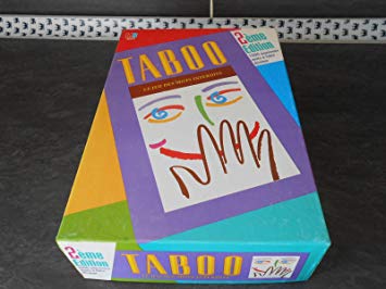 le but du jeu est de faire deviner un mot à ses coéquipiers sans utiliser certains mots interdits ou tabous. Il se joue avec un paquet de cartes sur lesquelles sont inscrits des mots à faire deviner et la liste des cinq mots interdits. Chacune des deux équipes a, à son tour, un temps donné pour deviner un maximum de mots. Si le joueur qui fait deviner se trompe et utilise un mot tabou ou bien un mot dérivé soit du mot à faire deviner soit d'un des mots tabous, la carte en cours, plus une autre carte déjà devinée, sont retirées des gains de son équipe. Lorsqu'une équipe fait deviner, l'autre surveille, grâce à un sablier, le temps écoulé et vérifie qu'aucun mot interdit n'est utilisé. Un mot taboo prononcé ou une traduction compte -1 point. |