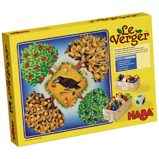 Les quatre arbres fruitiers croulent sous les fruits. Les pommes, les poires, les cerises et les prunes sont mûres et il est grand temps de les cueillir, car l’effronté corbeau attend la première occasion pour aller les dérober. Les joueurs essayent de cueillir les fruits avant que le corbeau ne puisse les voler |