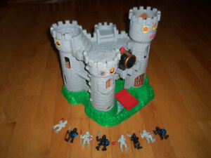 DÈS 3 ANS 1 forteresse DS CAISSE N°3 - 6 boulets - 1 canon - 5 chevaux - 24 personnages - 2 tables ronde - 1 notice |