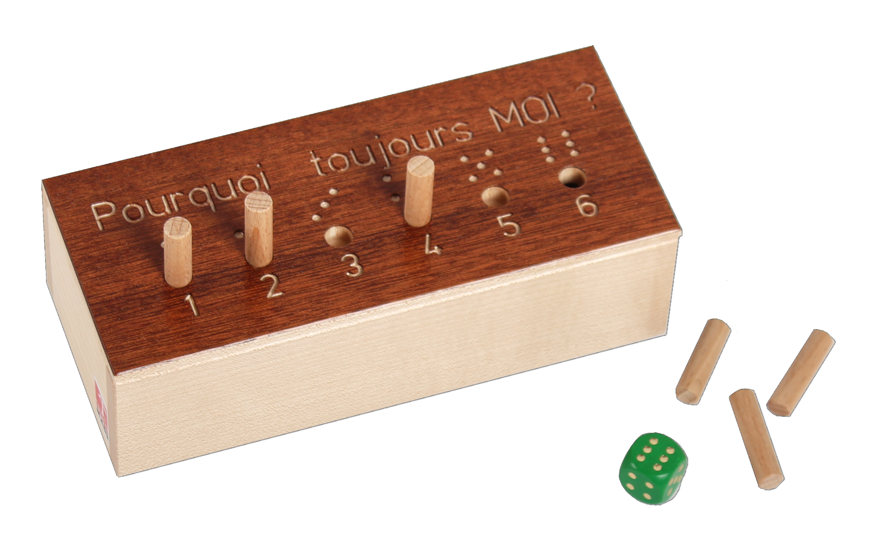 1 boite de jeu en bois 1 dé 39 petits bâtons 1 règle de jeu |