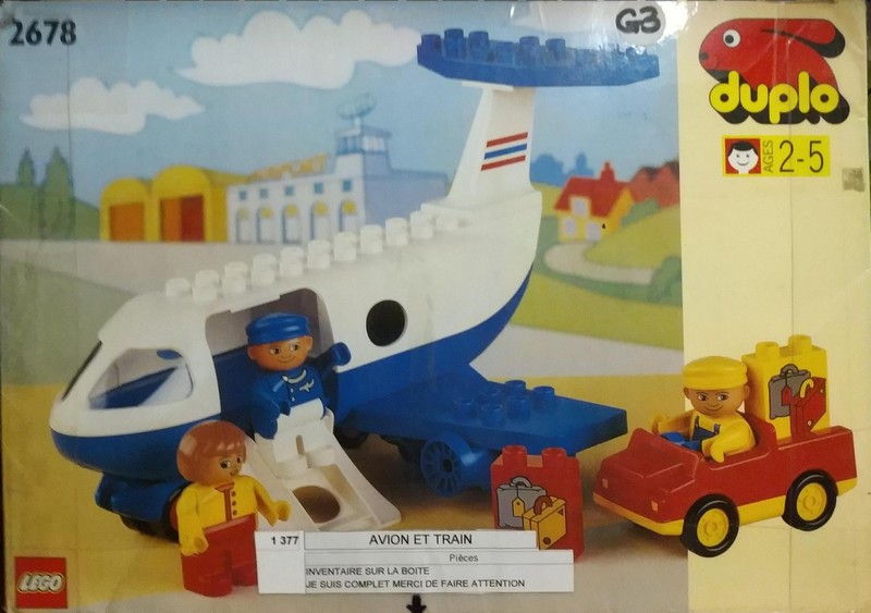 DES 2 ANS 3 personnages, 1 voiture, 2 valises, 3 pièces avec roues, 1 coque d'avion, 4 pièces bleues, 1 aileron |