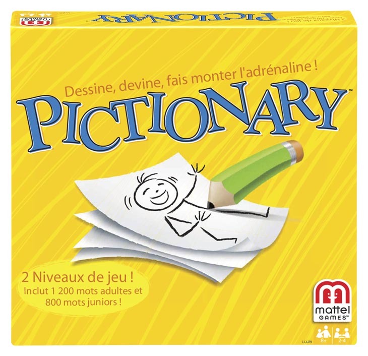 Après avoir retiré les cartes CATEGORIE du jeu, positionnez les cartes dans le sabot prévu à cet effet. Avant de commencer vous devez constituer les équipes. Le nombre d’équipe ne peut être supérieur à 4. Chaque équipe prend un crayon, un bloc, une carte CATEGORIE et un cube de couleur. Ce dernier doit être placé sur la case Départ. Pour commencer il vous suffit de choisir un dessinateur qui sera la premier à dessiner. Chaque équipe doit lancer le dé c’est celle qui a fait le nombre le plus élevé qui commence la partie. Un joueur retourne le sablier et le dessinateur a une minute pour faire trouver le mot à son équipe. Le joueur continue à dessiner jusqu’à ce que le mot soit trouvé ou que le temps soit écoulé. Si l’équipe trouve le mot elle lance le dé pour continuer à jouer. L’équipe avance son cube ( fonction du lancé de dé) et choisit un autre dessinateur qui va piocher une carte. Il doit dessiner le mot de la couleur de la case où le cube de son équipe se trouve. A chaque fois que l’équipe trouve un mot le dessinateur doit changer.Tant qu’une équipe conserve le dé, elle continue à dessiner. Si le mot n’est pas trouvé dans le temps limite, le dé passe à l’équipe située à gauche. |