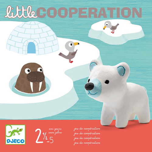 DES 2 1/2 ans. 4 animaux : 1 ours,1 lapin, 1 pingouin, 1 renard, 3 plateaux de jeu (1 plateau de départ "pêche'', 1 pont de glace, 1 plateau ''Igloo'', 6 pilliers en bois. 1 dés, 1 règle de jeu. |