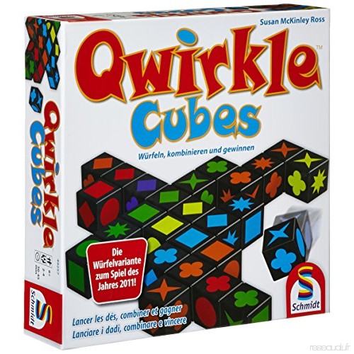 DES 6 ANS. 90 Qwirkle Cubes (15 dés de 6 couleurs), 1 sac en toile, la règle du jeu. |