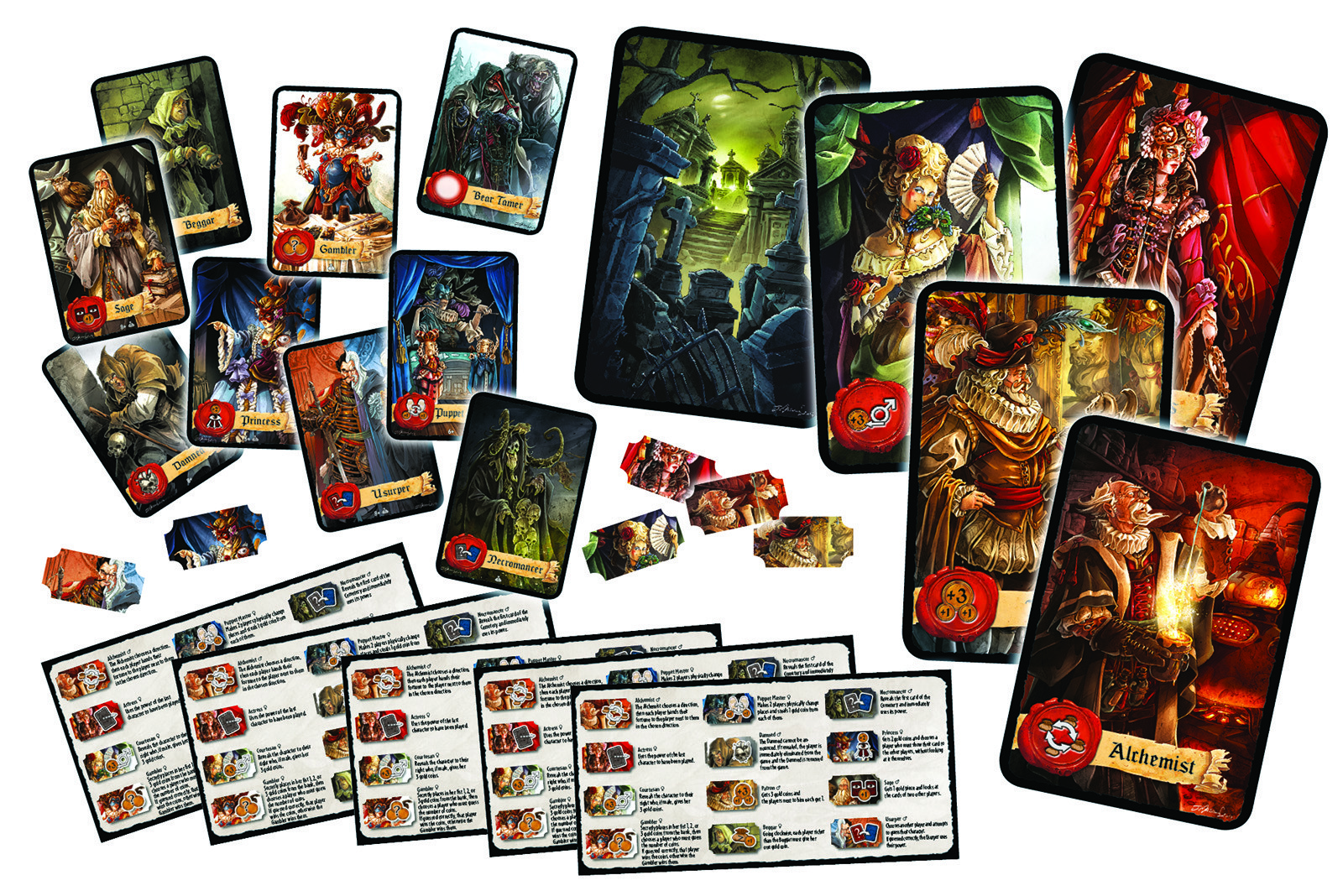 Le principe du jeu - L'objectif du jeu est d'être le premier joueur à obtenir 13 pièces d'or, ou alternativement d'être le plus riche quand un joueur est ruiné. Au début de la partie, chaque joueur reçoit une carte personnage et la montre à tous. Puis chacun pose sa carte face cachée. Désormais, toutes les identités resteront secrètes, y compris de leur propriétaire! C'est ça, l'astuce suprème de Mascarade. |