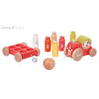 Avec ce jouet en bois, bébé pourra s'amuser à empiler et assembler les pièces du tracteur des Zigolos, il pourra aussi le promener grâce à sa petite cordelette et aussi à jouer aux quilles ! Un jouet d'éveil idéal pour les bébés. |
